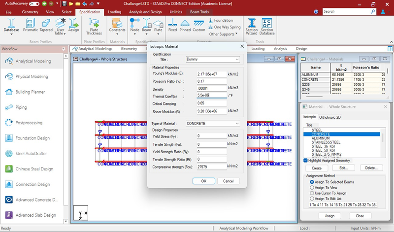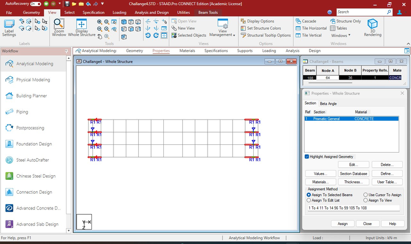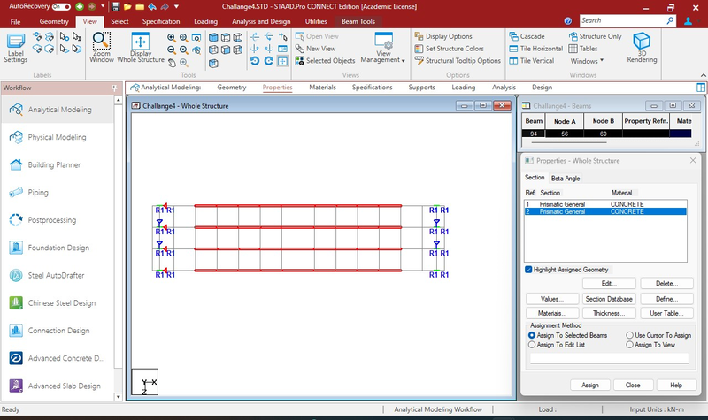 Properties assigned to end beams