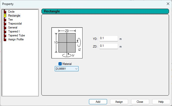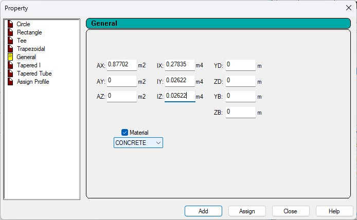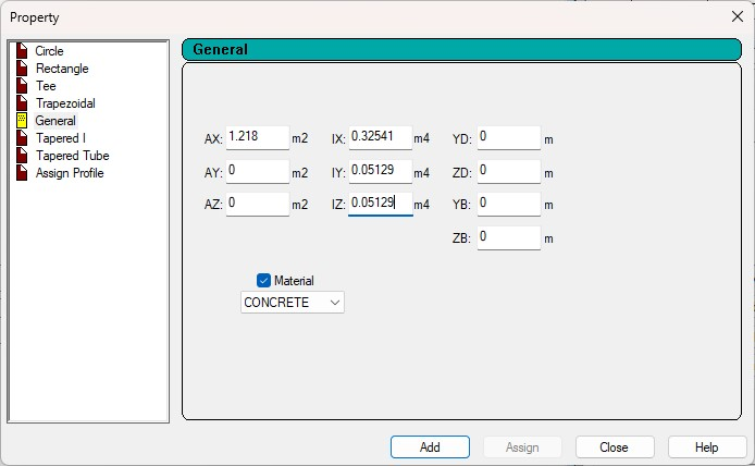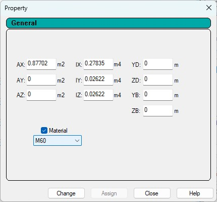 Properties assigned to mid portion of beam